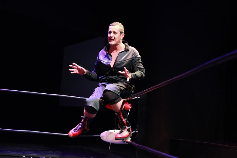 And by play I really mean experience as this is a show that audiences feel and smell from the minute they enter the theatre foyer. Sparkly mini-skirted ring girls pose with images of muscle bulging wrestlers, strong wafts of popcorn emanate from treats kiosk, and while we know we arrived early to the show, sounds of a live wrestling match blast into the lobby hurrying us into the theatre for fear of missing out. It’s actually just the pre-show warm up, an action-filled wrestling bout courtesy of the comedy troupe Doomsday Wrestling cleverly getting the audience cheering and booing and in the mood for a story about wrestling.